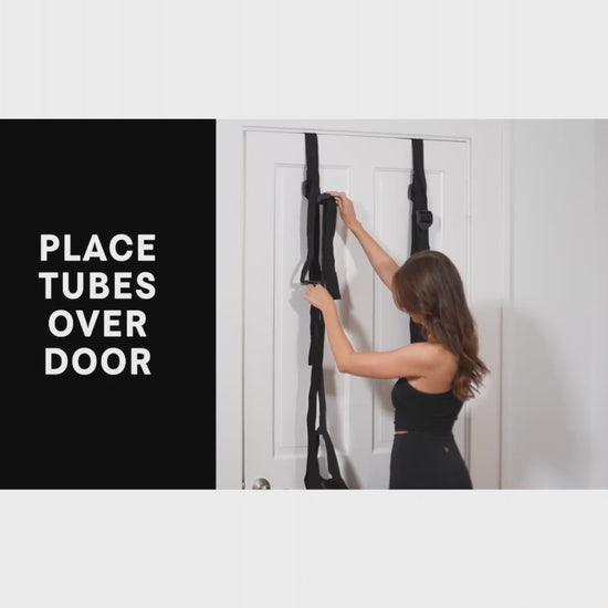 Place bars over the top of the door. Close & lock the door to secure the straps.