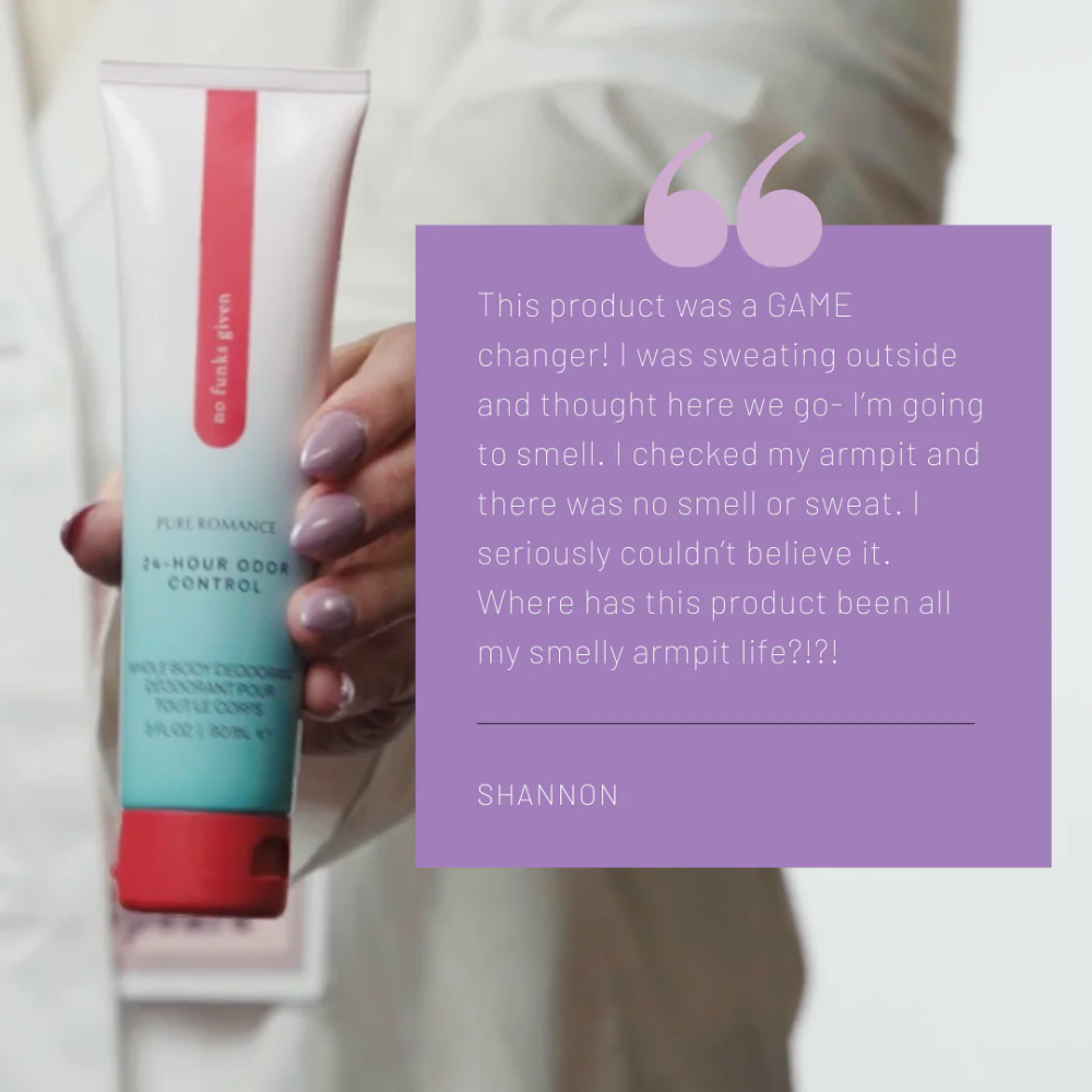 - Apply anywhere you need odor protection armpits, under boob, feet, butt, or intimate areas.